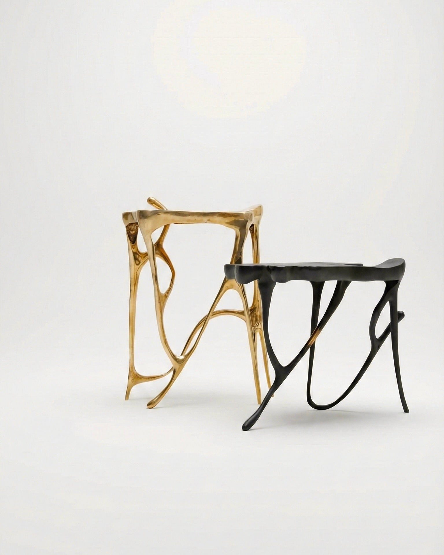 The Sumi Side Table, a refined piece of brass furniture. Inspired by the fluid elegance of ink calligraphy, this side table blends artistic expression with functional design, adding sophistication to living areas, offices, and curated interiors. Its sleek silhouette and subtle detailing make it a versatile modern luxury decor that complements both contemporary and classic spaces.